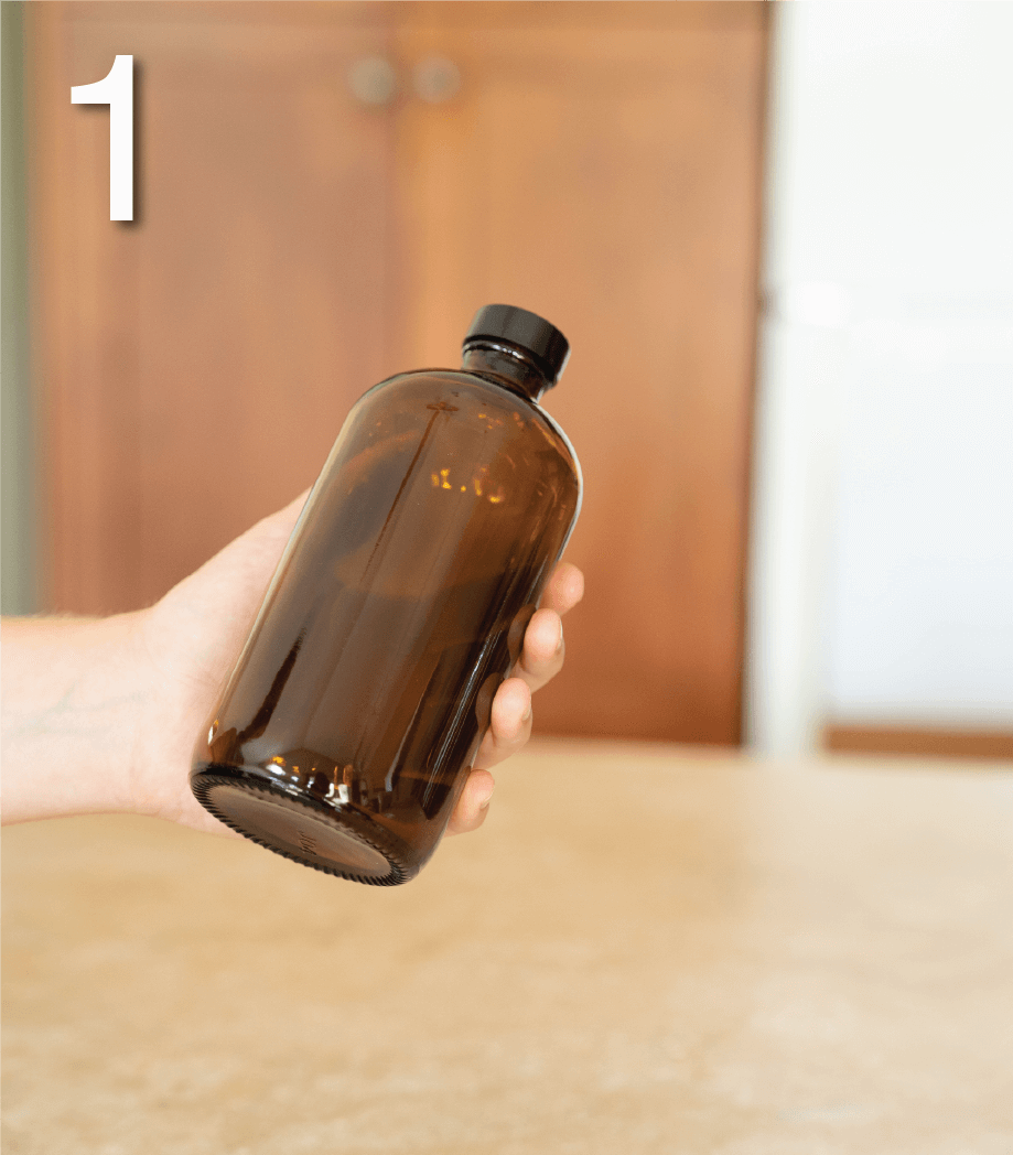 Step 1: Start with a 500mL amber glass bottle and dispenser.